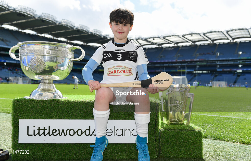 3 April 2018; Players from Clara GAA, Co Offaly, pictured with the Sam Maguire and Liam MacCarthy Trophies during Day 1 of the The Go Games Provincial days in partnership with Littlewoods Ireland at Croke Park in Dublin. Photo by Sam Barnes/Sportsfile