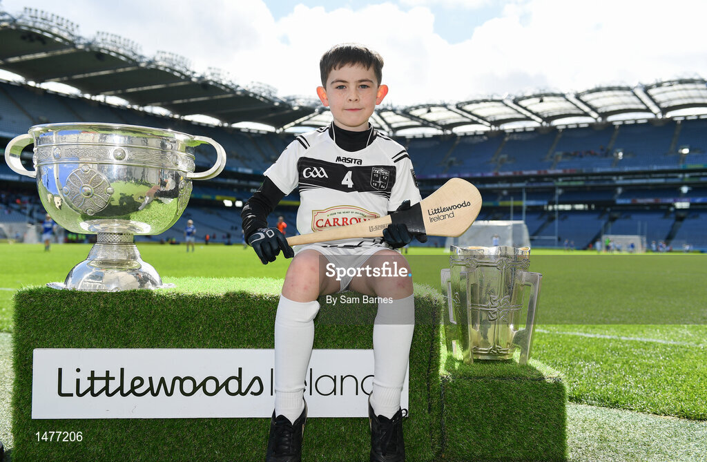 3 April 2018; Players from Clara GAA, Co Offaly, pictured with the Sam Maguire and Liam MacCarthy Trophies during Day 1 of the The Go Games Provincial days in partnership with Littlewoods Ireland at Croke Park in Dublin. Photo by Sam Barnes/Sportsfile