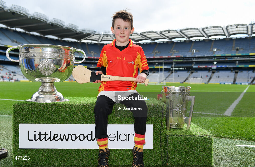 3 April 2018; Players from Horeswood GAA, Co Wexford, pictured with the Sam Maguire and Liam MacCarthy Trophies during Day 1 of the The Go Games Provincial days in partnership with Littlewoods Ireland at Croke Park in Dublin. Photo by Sam Barnes/Sportsfile