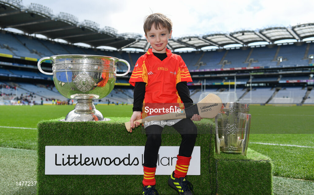 3 April 2018; Players from Horeswood GAA, Co Wexford, pictured with the Sam Maguire and Liam MacCarthy Trophies during Day 1 of the The Go Games Provincial days in partnership with Littlewoods Ireland at Croke Park in Dublin. Photo by Sam Barnes/Sportsfile