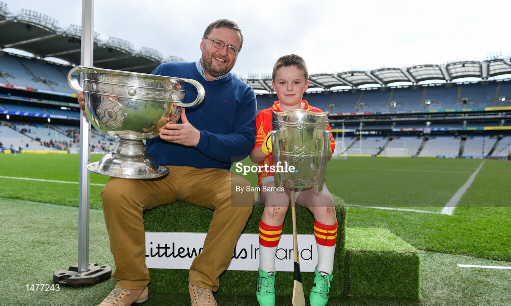 3 April 2018; Players from Horeswood GAA, Co Wexford, pictured with the Sam Maguire and Liam MacCarthy Trophies during Day 1 of the The Go Games Provincial days in partnership with Littlewoods Ireland at Croke Park in Dublin. Photo by Sam Barnes/Sportsfile