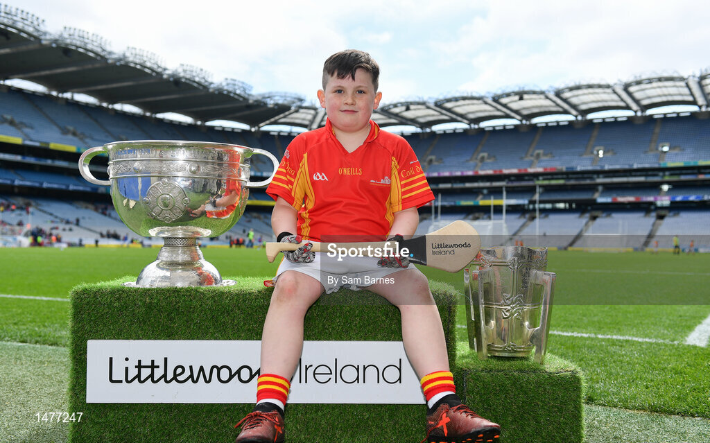 3 April 2018; Players from Horeswood GAA, Co Wexford, pictured with the Sam Maguire and Liam MacCarthy Trophies during Day 1 of the The Go Games Provincial days in partnership with Littlewoods Ireland at Croke Park in Dublin. Photo by Sam Barnes/Sportsfile