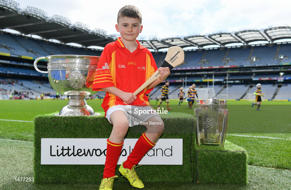3 April 2018; Players from Horeswood GAA, Co Wexford, pictured with the Sam Maguire and Liam MacCarthy Trophies during Day 1 of the The Go Games Provincial days in partnership with Littlewoods Ireland at Croke Park in Dublin. Photo by Sam Barnes/Sportsfile