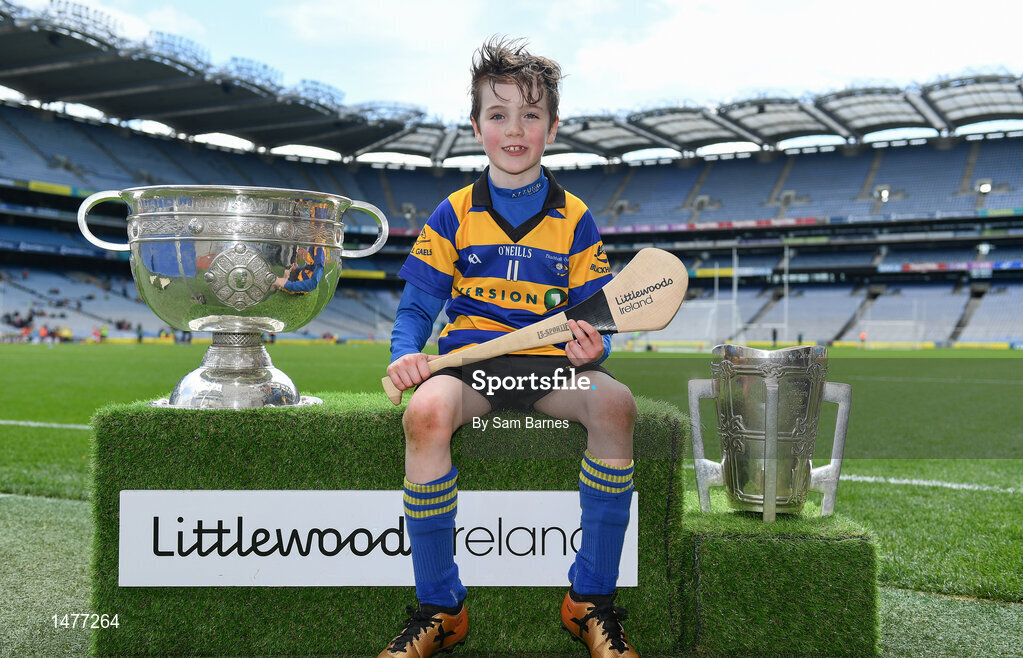 3 April 2018; Players from Blackhall Gaels GAA, Co Meath, pictured with the Sam Maguire and Liam MacCarthy Trophies during Day 1 of the The Go Games Provincial days in partnership with Littlewoods Ireland at Croke Park in Dublin. Photo by Sam Barnes/Sportsfile