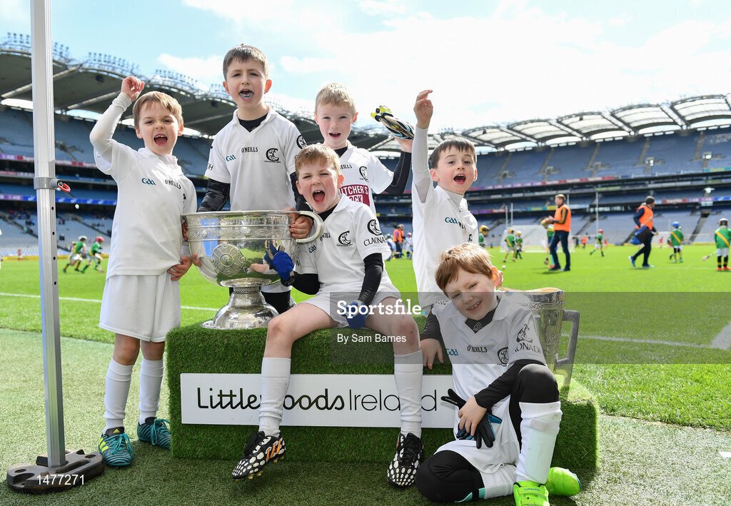 3 April 2018; Players from Clane GAA, Co Kildare, pictured with the Sam Maguire and Liam MacCarthy Trophies during Day 1 of the The Go Games Provincial days in partnership with Littlewoods Ireland at Croke Park in Dublin. Photo by Sam Barnes/Sportsfile