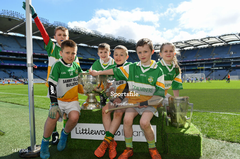 3 April 2018; Players from Crettyard GAA, Co Laois, pictured with the Sam Maguire and Liam MacCarthy Trophies during Day 1 of the The Go Games Provincial days in partnership with Littlewoods Ireland at Croke Park in Dublin. Photo by Sam Barnes/Sportsfile