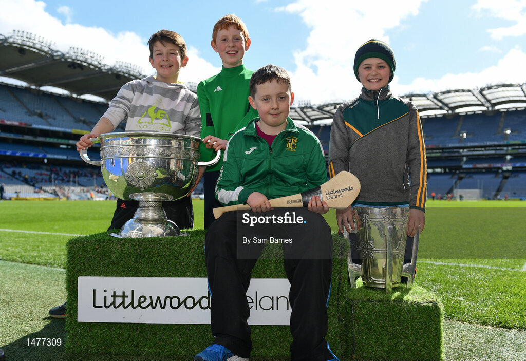 3 April 2018; Players from Crettyard GAA, Co Laois, pictured with the Sam Maguire and Liam MacCarthy Trophies during Day 1 of the The Go Games Provincial days in partnership with Littlewoods Ireland at Croke Park in Dublin. Photo by Sam Barnes/Sportsfile