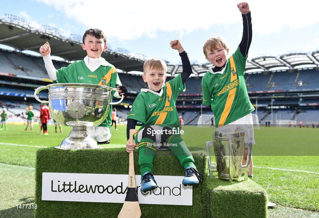 3 April 2018; Players from Carrickshock GAA, Co Kilkenny, pictured with the Sam Maguire and Liam MacCarthy Trophies during Day 1 of the The Go Games Provincial days in partnership with Littlewoods Ireland at Croke Park in Dublin. Photo by Sam Barnes/Sportsfile