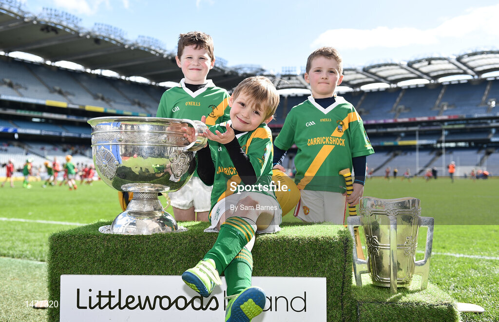 3 April 2018; Players from Carrickshock GAA, Co Kilkenny, pictured with the Sam Maguire and Liam MacCarthy Trophies during Day 1 of the The Go Games Provincial days in partnership with Littlewoods Ireland at Croke Park in Dublin. Photo by Sam Barnes/Sportsfile