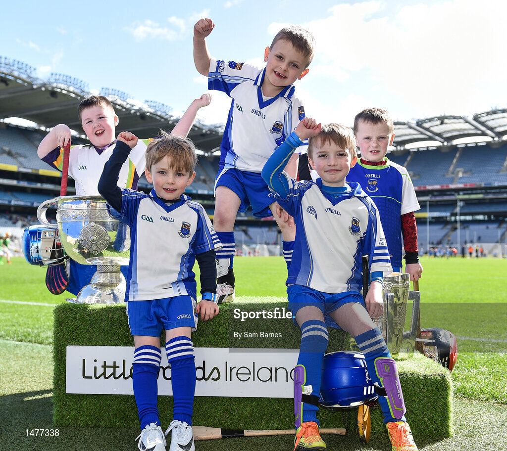 3 April 2018; Players from Craanford GAA, Co Wexford, pictured with the Sam Maguire and Liam MacCarthy Trophies during Day 1 of the The Go Games Provincial days in partnership with Littlewoods Ireland at Croke Park in Dublin. Photo by Sam Barnes/Sportsfile