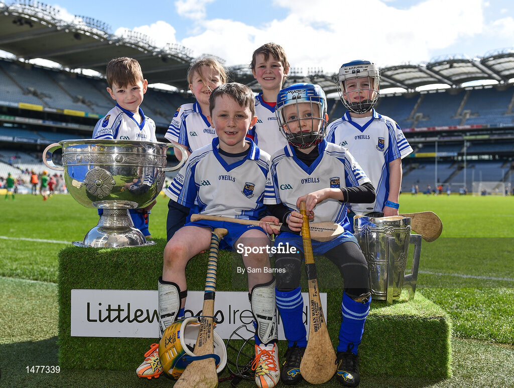 3 April 2018; Players from Craanford GAA, Co Wexford, pictured with the Sam Maguire and Liam MacCarthy Trophies during Day 1 of the The Go Games Provincial days in partnership with Littlewoods Ireland at Croke Park in Dublin. Photo by Sam Barnes/Sportsfile