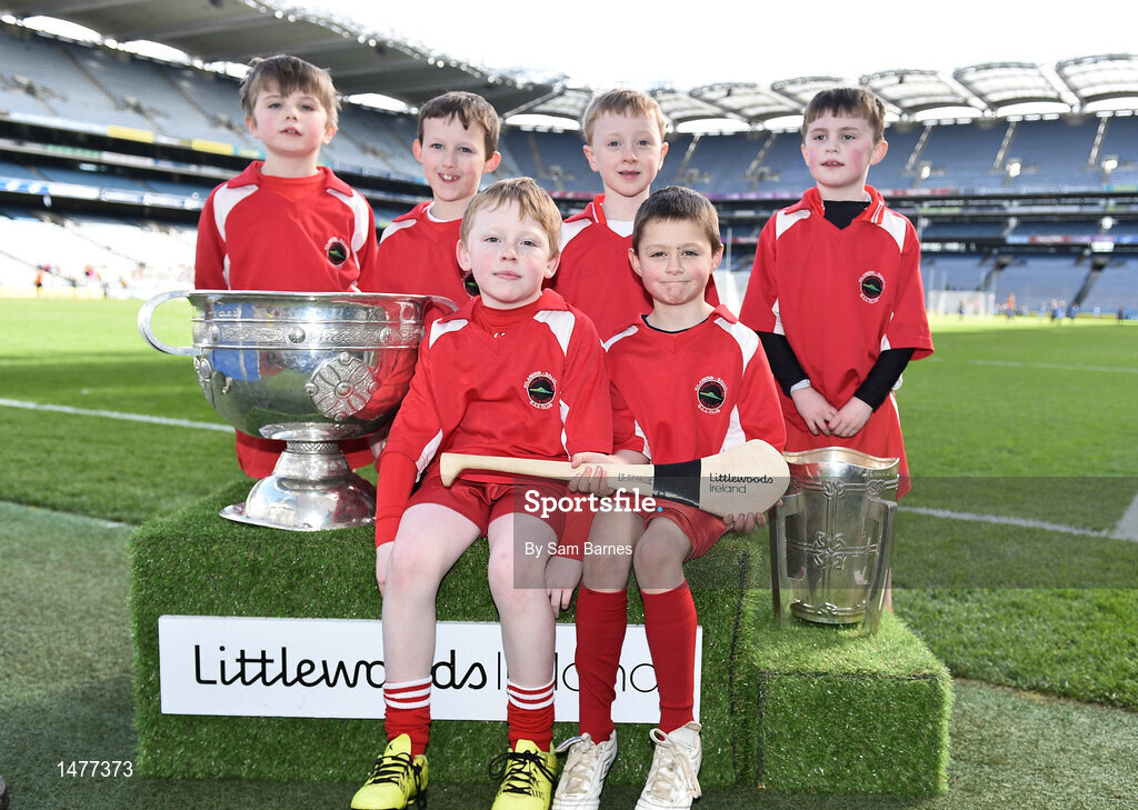 3 April 2018; Players from Ballenstragh Gaels GAA, Co Wexford, pictured with the Sam Maguire and Liam MacCarthy Trophies during Day 1 of the The Go Games Provincial days in partnership with Littlewoods Ireland at Croke Park in Dublin. Photo by Sam Barnes/Sportsfile