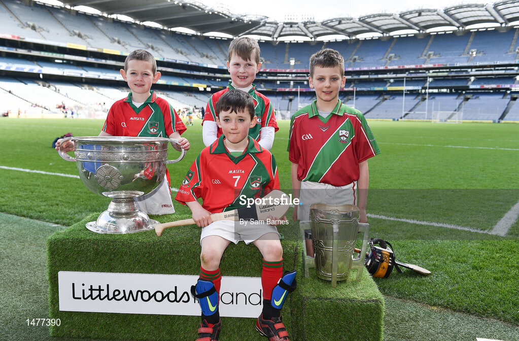 3 April 2018; Players from St Martins GAA, Co Kilkenny, pictured with the Sam Maguire and Liam MacCarthy Trophies during Day 1 of the The Go Games Provincial days in partnership with Littlewoods Ireland at Croke Park in Dublin. Photo by Sam Barnes/Sportsfile