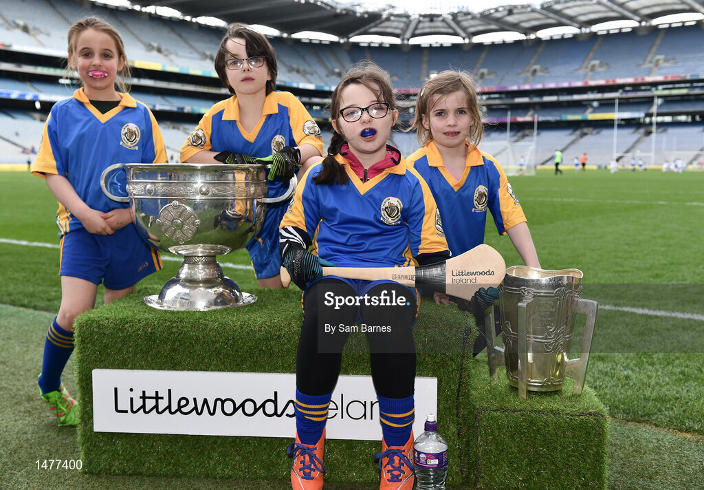 3 April 2018; Players from Wolfetones GAA in Drogheda, Co Louth, pictured with the Sam Maguire and Liam MacCarthy Trophies during Day 1 of the The Go Games Provincial days in partnership with Littlewoods Ireland at Croke Park in Dublin. Photo by Sam Barnes/Sportsfile
