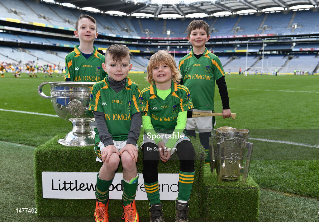3 April 2018; Players from Dunnamaggin GAA, Co Kilkenny, pictured with the Sam Maguire and Liam MacCarthy Trophies during Day 1 of the The Go Games Provincial days in partnership with Littlewoods Ireland at Croke Park in Dublin. Photo by Sam Barnes/Sportsfile