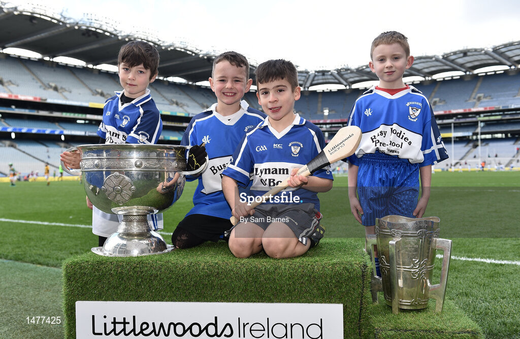 3 April 2018; Players from Raharney GAA, Co Westmeath, pictured with the Sam Maguire and Liam MacCarthy Trophies during Day 1 of the The Go Games Provincial days in partnership with Littlewoods Ireland at Croke Park in Dublin. Photo by Sam Barnes/Sportsfile