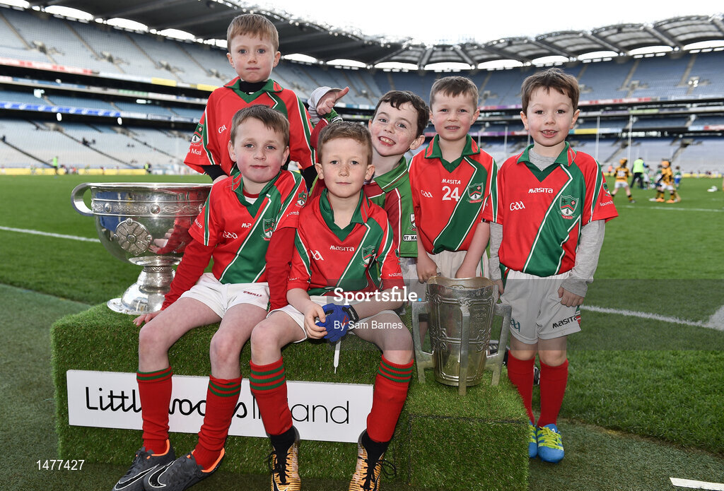 3 April 2018; Players from St Martins GAA, Co Kilkenny, pictured with the Sam Maguire and Liam MacCarthy Trophies during Day 1 of the The Go Games Provincial days in partnership with Littlewoods Ireland at Croke Park in Dublin. Photo by Sam Barnes/Sportsfile