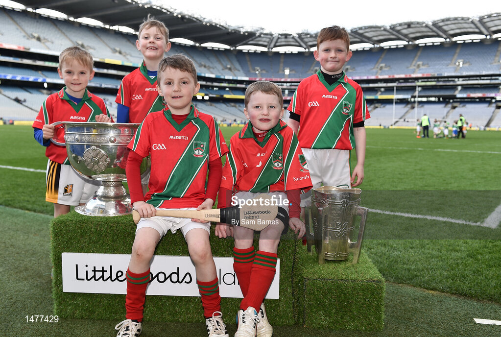 3 April 2018; Players from St Martins GAA, Co Kilkenny, pictured with the Sam Maguire and Liam MacCarthy Trophies during Day 1 of the The Go Games Provincial days in partnership with Littlewoods Ireland at Croke Park in Dublin. Photo by Sam Barnes/Sportsfile