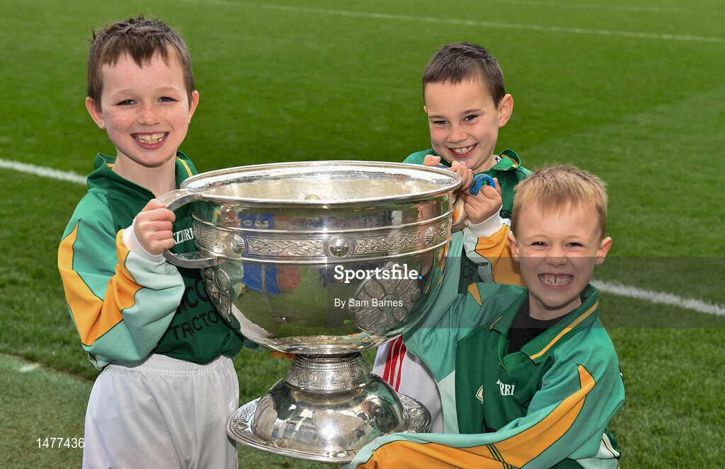 3 April 2018; Players from Naomh Fionnbarra GAA, CO Louth, pictured with the Sam Maguire Cup during Day 1 of the The Go Games Provincial days in partnership with Littlewoods Ireland at Croke Park in Dublin. Photo by Sam Barnes/Sportsfile