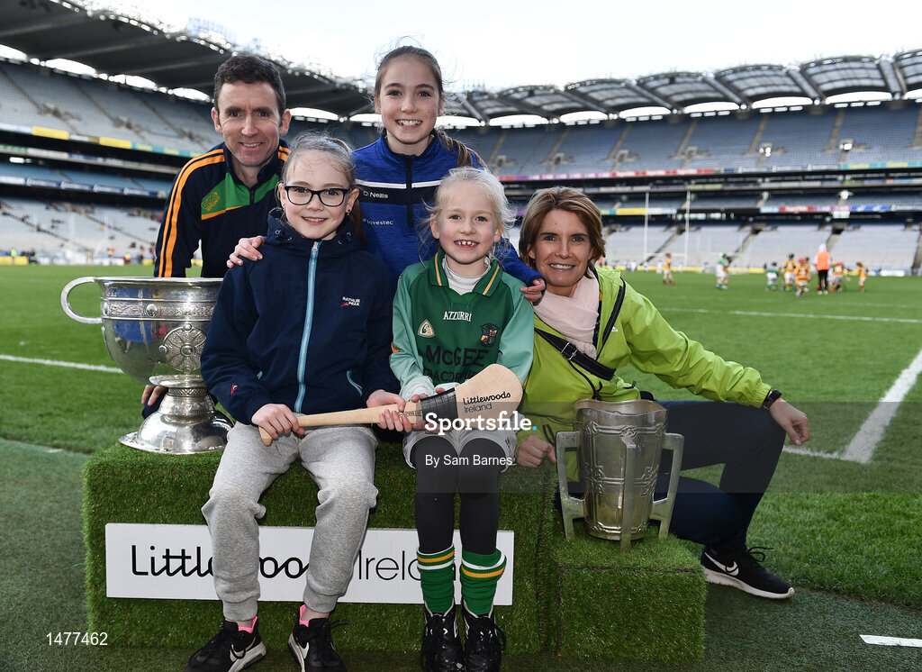 3 April 2018; Players and supporters from Naomh Fionnbarra GAA, CO Louth, pictured with the Sam Maguire and Liam MacCarthy Trophies during Day 1 of the The Go Games Provincial days in partnership with Littlewoods Ireland at Croke Park in Dublin. Photo by Sam Barnes/Sportsfile