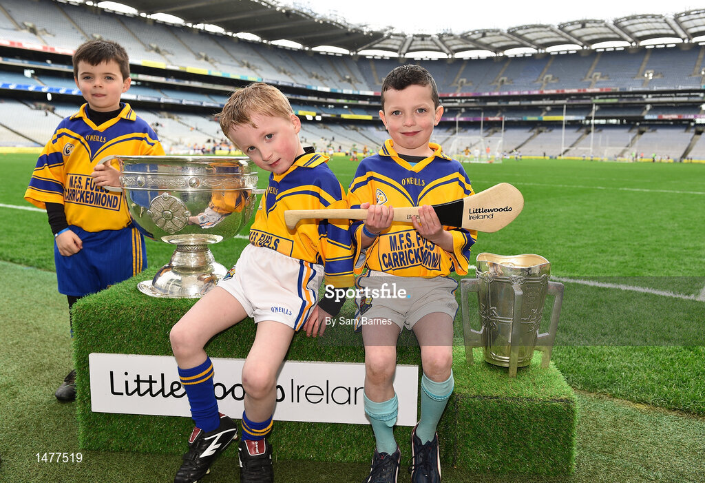 3 April 2018; Players from Carrick Sarsfields GAA, Co Longford, pictured with the Sam Maguire and Liam MacCarthy Trophies during Day 1 of the The Go Games Provincial days in partnership with Littlewoods Ireland at Croke Park in Dublin. Photo by Sam Barnes/Sportsfile