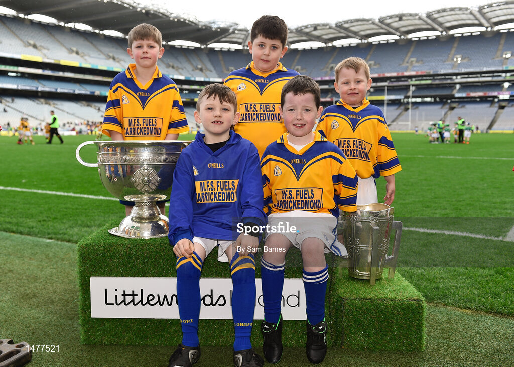 3 April 2018; Players from Carrick Sarsfields GAA, Co Longford, pictured with the Sam Maguire and Liam MacCarthy Trophies during Day 1 of the The Go Games Provincial days in partnership with Littlewoods Ireland at Croke Park in Dublin. Photo by Sam Barnes/Sportsfile