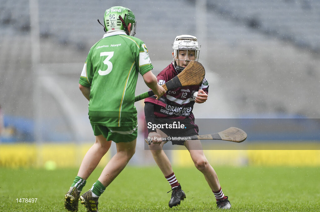 6 April 2018; Seán Hennessey of Hospital-Herbertstown, Co Limerick, right, in action against Shane Clarke of St Vincent's, Cork, during Day 4 of the The Go Games Provincial days in partnership with Littlewoods Ireland at Croke Park in Dublin. Photo by Piaras Ó Mídheach/Sportsfile