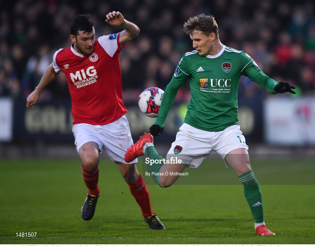 13 April 2018; Kieran Sadlier of Cork City in action against Ryan Brennan of St Patrick's Athletic during SSE Airtricity League Premier Division match between Cork City and St Patrick's Athletic at Turner's Cross in Cork. Photo by Piaras Ó Mídheach/Sportsfile