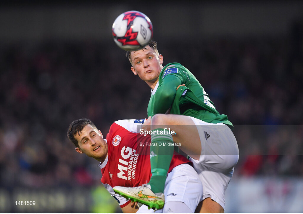 13 April 2018; Sean McLoughlin of Cork City in action against Jake Keegan of St Patrick's Athletic during SSE Airtricity League Premier Division match between Cork City and St Patrick's Athletic at Turner's Cross in Cork. Photo by Piaras Ó Mídheach/Sportsfile