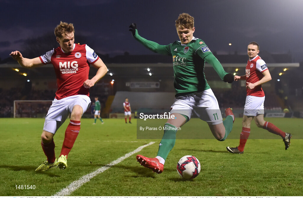 13 April 2018; Kieran Sadlier of Cork City in action against Simon Madden of St Patrick's Athletic during SSE Airtricity League Premier Division match between Cork City and St Patrick's Athletic at Turner's Cross in Cork. Photo by Piaras Ó Mídheach/Sportsfile
