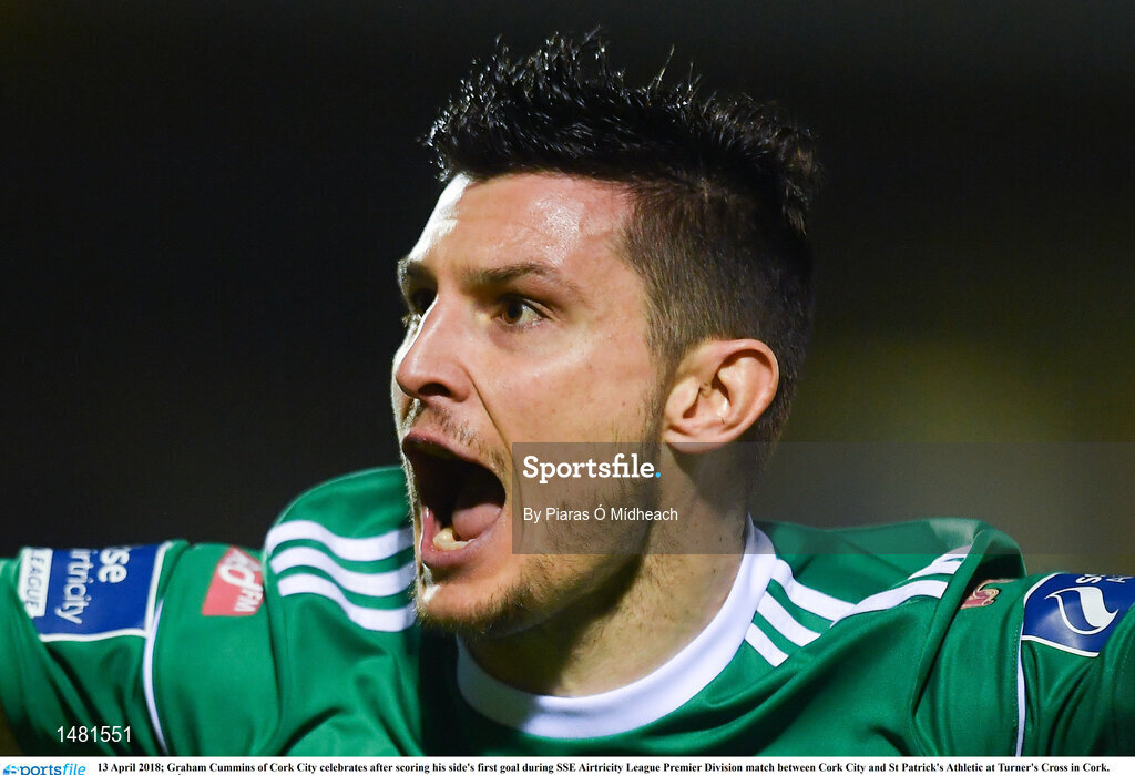 13 April 2018; Graham Cummins of Cork City celebrates after scoring his side's first goal during SSE Airtricity League Premier Division match between Cork City and St Patrick's Athletic at Turner's Cross in Cork. Photo by Piaras Ó Mídheach/Sportsfile