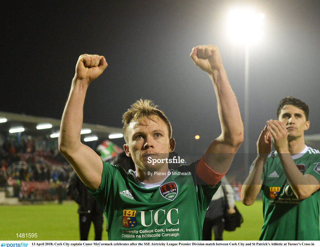 13 April 2018; Cork City captain Conor McCormack celebrates after the SSE Airtricity League Premier Division match between Cork City and St Patrick's Athletic at Turner's Cross in Cork. Photo by Piaras Ó Mídheach/Sportsfile