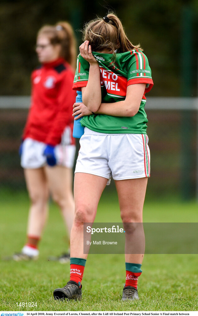 14 April 2018; Jenny Everard of Loreto, Clonmel, after the Lidl All Ireland Post Primary School Senior A Final match between Loreto, Clonmel, Tipperary and Loreto, Cavan at Kinnegad in County Westmeath. Photo by Matt Browne/Sportsfile