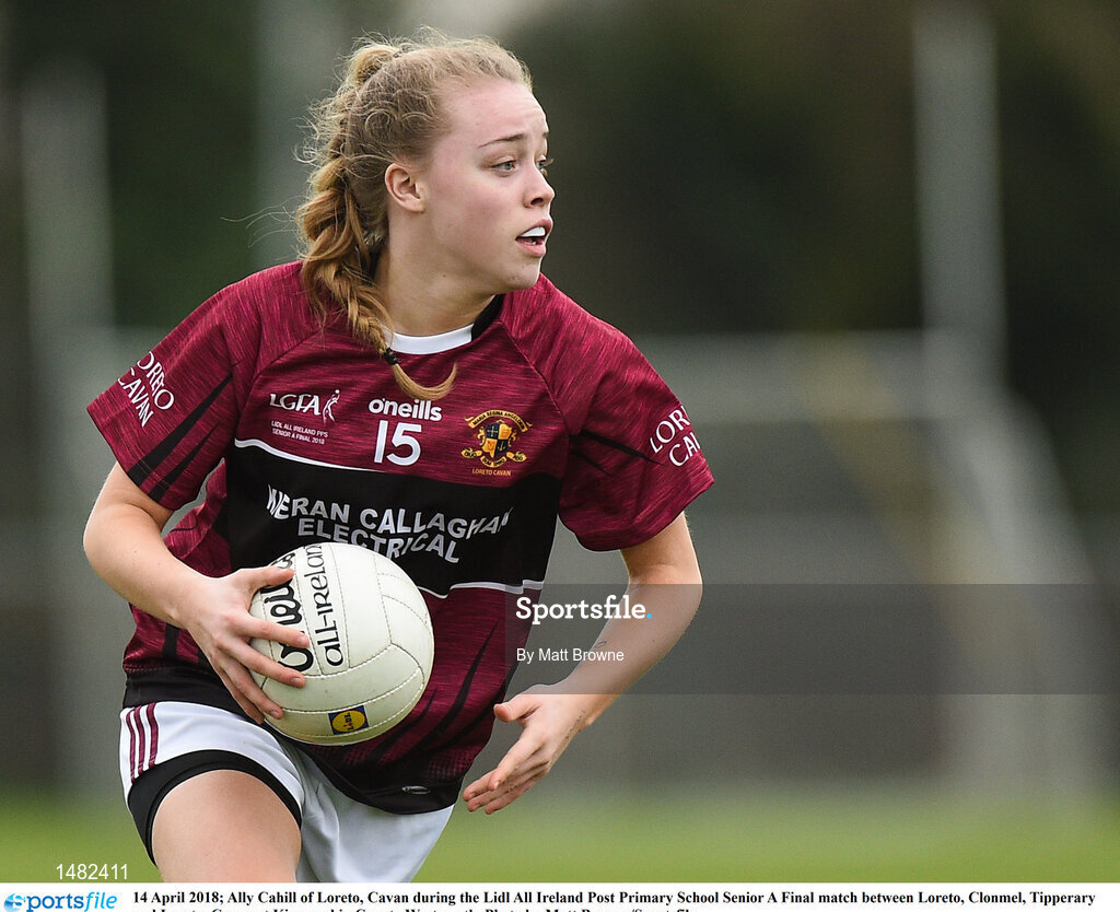14 April 2018; Ally Cahill of Loreto, Cavan during the Lidl All Ireland Post Primary School Senior A Final match between Loreto, Clonmel, Tipperary and Loreto, Cavan at Kinnegad in County Westmeath. Photo by Matt Browne/Sportsfile