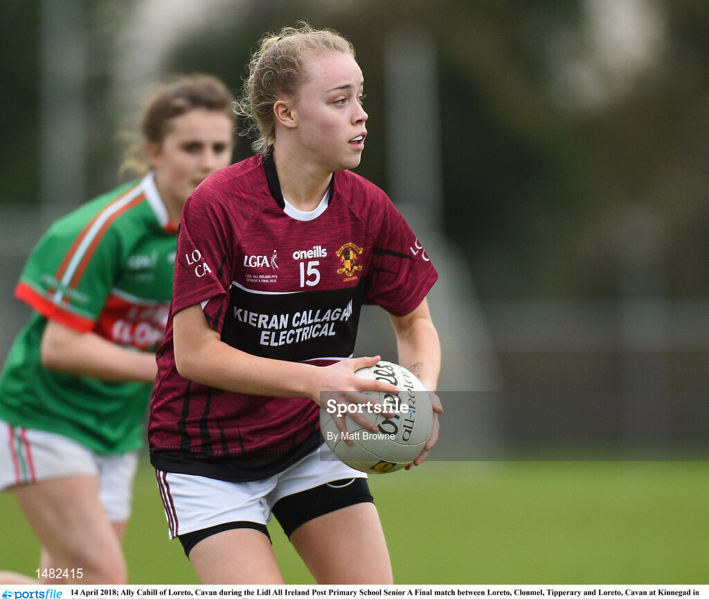 14 April 2018; Ally Cahill of Loreto, Cavan during the Lidl All Ireland Post Primary School Senior A Final match between Loreto, Clonmel, Tipperary and Loreto, Cavan at Kinnegad in County Westmeath. Photo by Matt Browne/Sportsfile