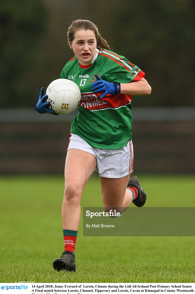 14 April 2018; Jenny Everard of Loreto, Clonme during the Lidl All Ireland Post Primary School Senior A Final match between Loreto, Clonmel, Tipperary and Loreto, Cavan at Kinnegad in County Westmeath. Photo by Matt Browne/Sportsfile