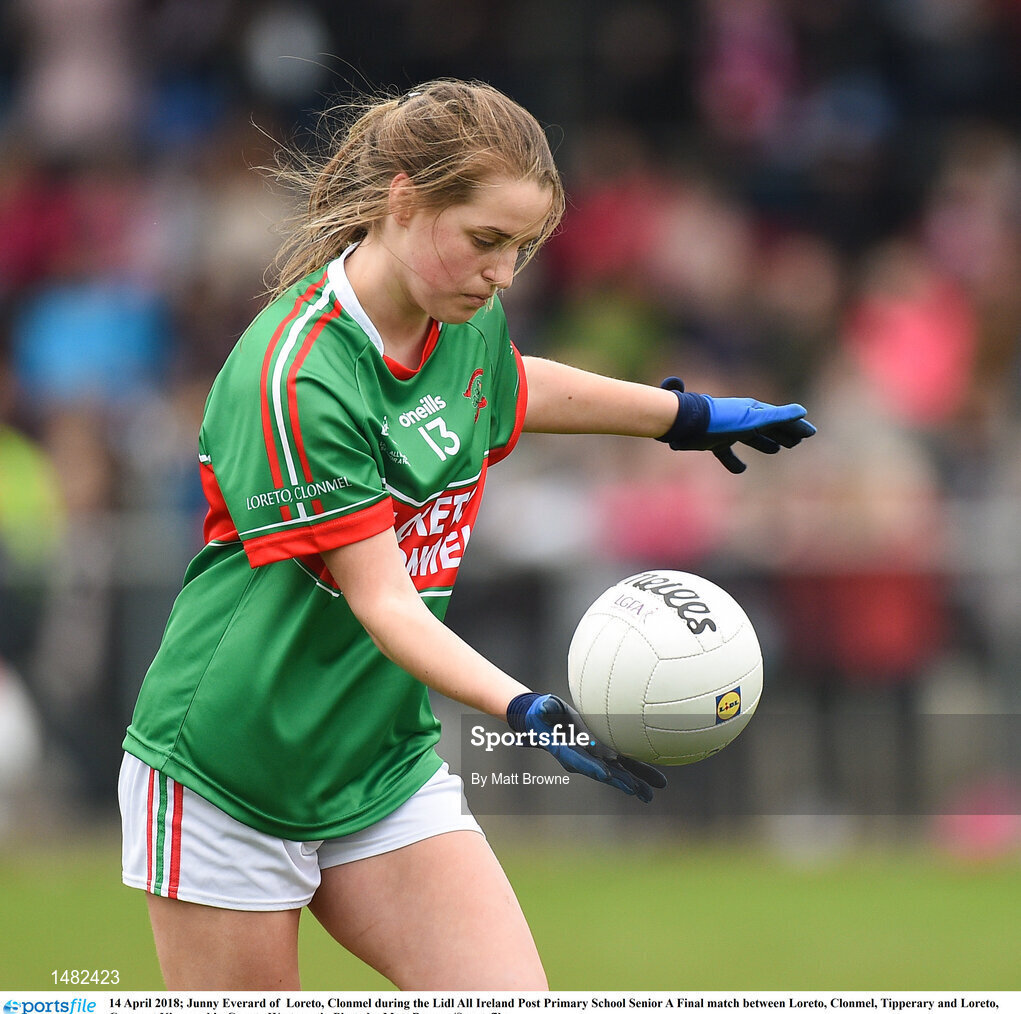 14 April 2018; Junny Everard of Loreto, Clonmel during the Lidl All Ireland Post Primary School Senior A Final match between Loreto, Clonmel, Tipperary and Loreto, Cavan at Kinnegad in County Westmeath. Photo by Matt Browne/Sportsfile