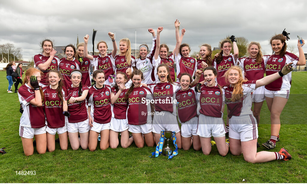 15 April 2018; Glenamaddy, Galway players celebrate following their side's victory in the Lidl All Ireland Post Primary School Senior B Final match between Glenamaddy, Galway and Presentation, Thurles, Tipperary at Duggan Park in Ballinasloe, Co Galway. Photo by Seb Daly/Sportsfile