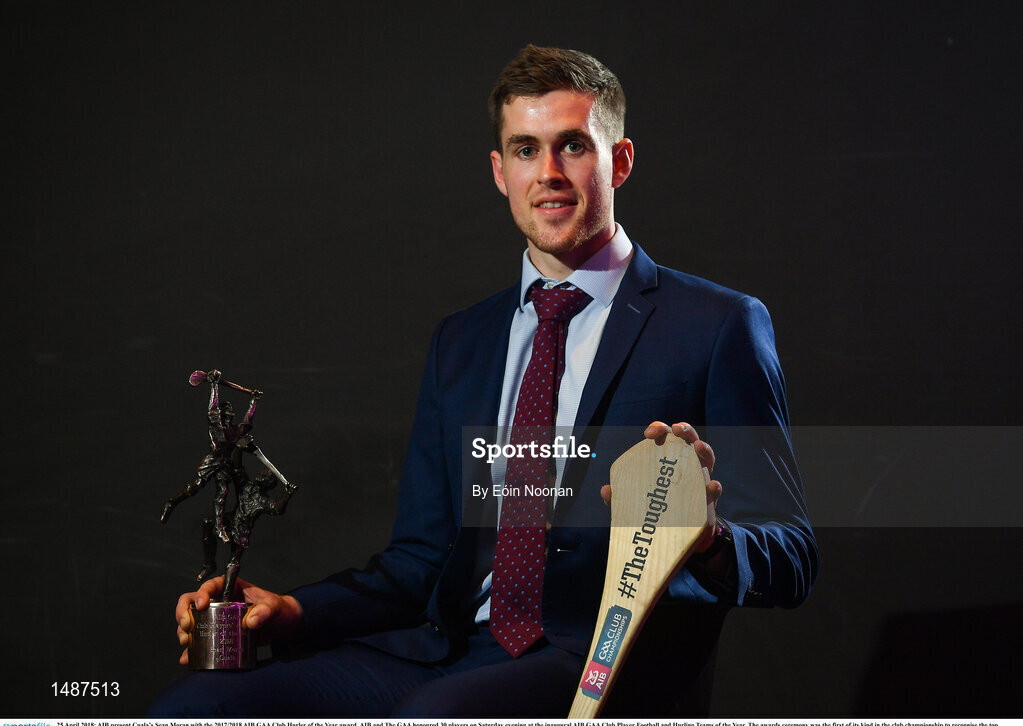 25 April 2018; AIB present Cuala’s Sean Moran with the 2017/2018 AIB GAA Club Hurler of the Year award. AIB and The GAA honoured 30 players on Saturday evening at the inaugural AIB GAA Club Player Football and Hurling Teams of the Year. The awards ceremony was the first of its kind in the club championship to recognise the top performing club players and to celebrate their hard work, commitment and individual achievements at a national level. For exclusive content and to see why AIB are backing Club and County follow us @AIB_GAA on Twitter, Instagram, Snapchat, Facebook and AIB.ie/GAA. Photo by Eóin Noonan/Sportsfile