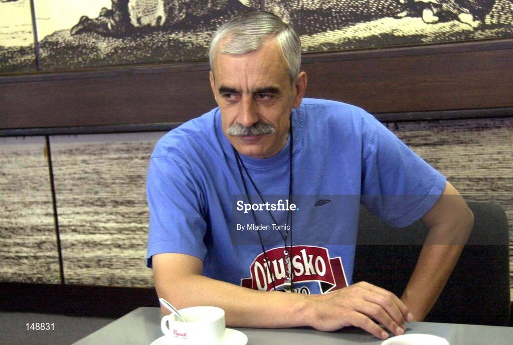 28 July 2004; Ivan Katalinic, Hajduk Split manager, speaking at a press conference before the match. UEFA Champions League, 2nd Qualifying Round, 1st Leg, Hajduk Split v Shelbourne, Hajduk Stadium, Poljud, Croatia. Picture credit; Mladen Tomic / SPORTSFILE