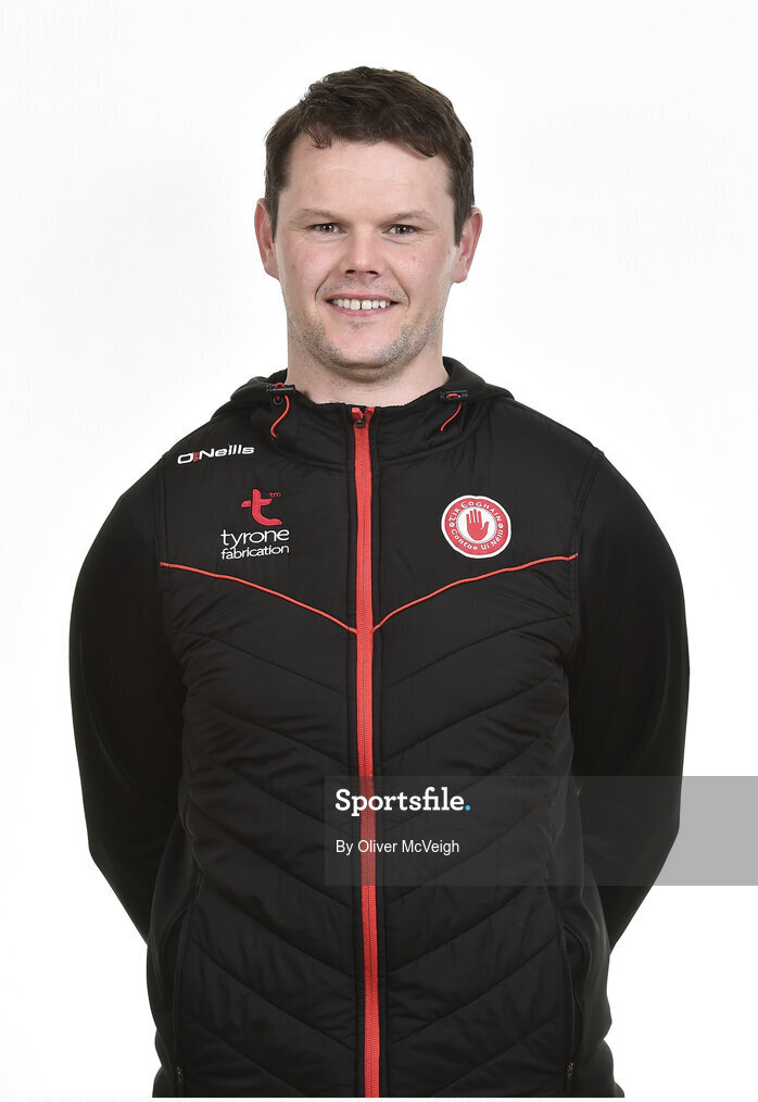 24 April 2018; Tyrone trainer Peter Donnelly during Tyrone Football Squad Portraits 2018 at Garvaghey in Co Tyrone. Photo by Oliver McVeigh/Sportsfile