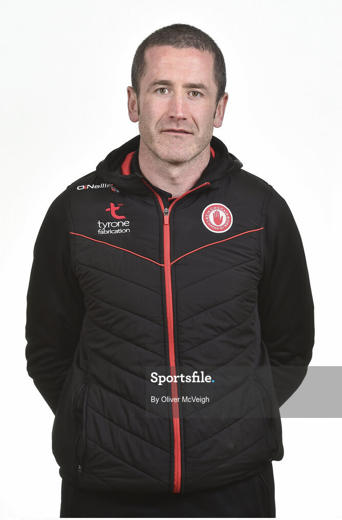 24 April 2018; Tyrone Forwards Coach Stephen O.Neill during Tyrone Football Squad Portraits 2018 at Garvaghey in Co Tyrone. Photo by Oliver McVeigh/Sportsfile
