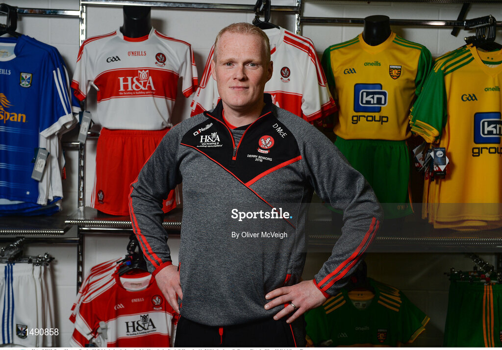 30 April 2018; Derry Manager Damian McErlain during the Launch of the Ulster Senior Football Championship 2018 in Strabane, Co Tyrone. Photo by Oliver McVeigh/Sportsfile