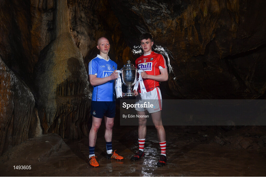 2 May 2018; Fergal Whitely of Dublin with Darragh Fitzgibbon of Cork at the launch of the Bord Gáis Energy GAA Hurling U21 All-Ireland Championship at Mitchelstown Caves in Cork. The 2018 campaign begins on May 7th with Clare hosting current holders Limerick in Ennis. Follow all of the action at #HurlingToTheCore. Photo by Eóin Noonan/Sportsfile