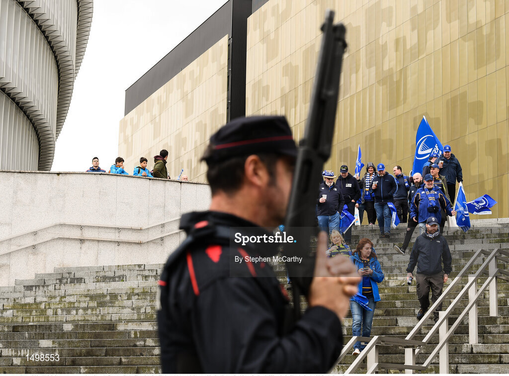12 May 2018; Leinster supporters arrive prior to the European Rugby Champions Cup Final match between Leinster and Racing 92 at the San Mames Stadium in Bilbao, Spain. Photo by Stephen McCarthy/Sportsfile