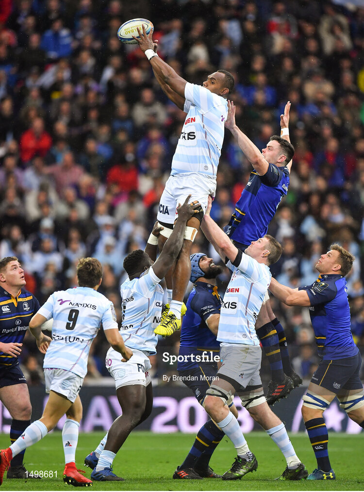 12 May 2018; Leone Nakawara of Racing 92 wins a lineout from James Ryan of Leinster during the European Rugby Champions Cup Final match between Leinster and Racing 92 at the San Mames Stadium in Bilbao, Spain. Photo by Brendan Moran/Sportsfile