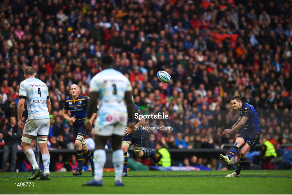 12 May 2018; Jonathan Sexton of Leinster kicks a penalty during the European Rugby Champions Cup Final match between Leinster and Racing 92 at the San Mames Stadium in Bilbao, Spain. Photo by Stephen McCarthy/Sportsfile