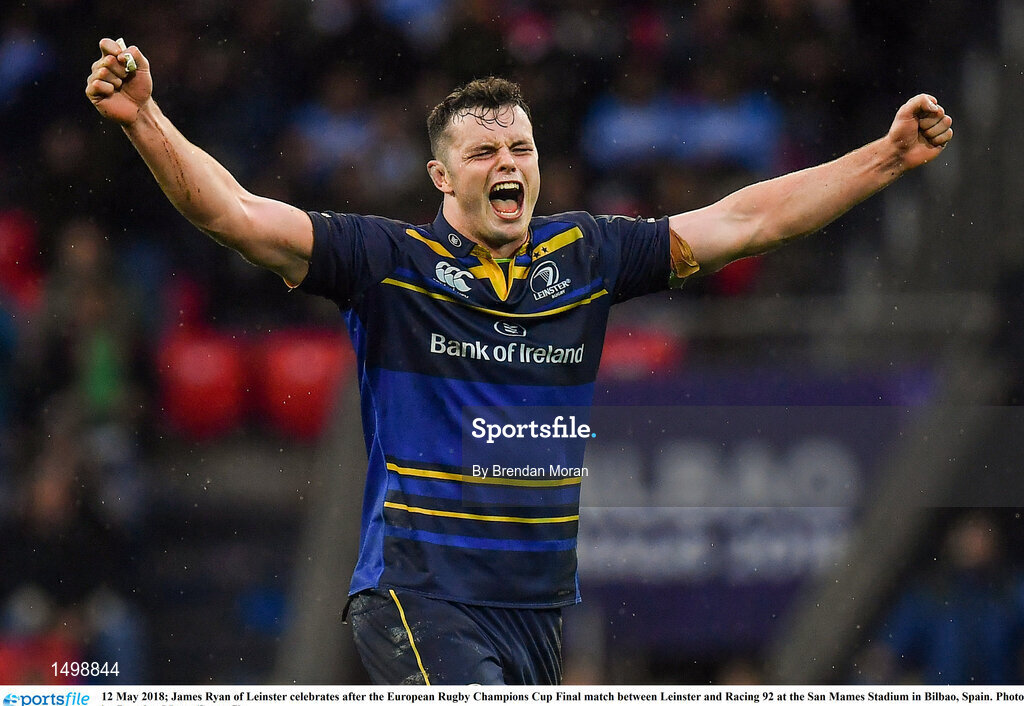 12 May 2018; James Ryan of Leinster celebrates after the European Rugby Champions Cup Final match between Leinster and Racing 92 at the San Mames Stadium in Bilbao, Spain. Photo by Brendan Moran/Sportsfile