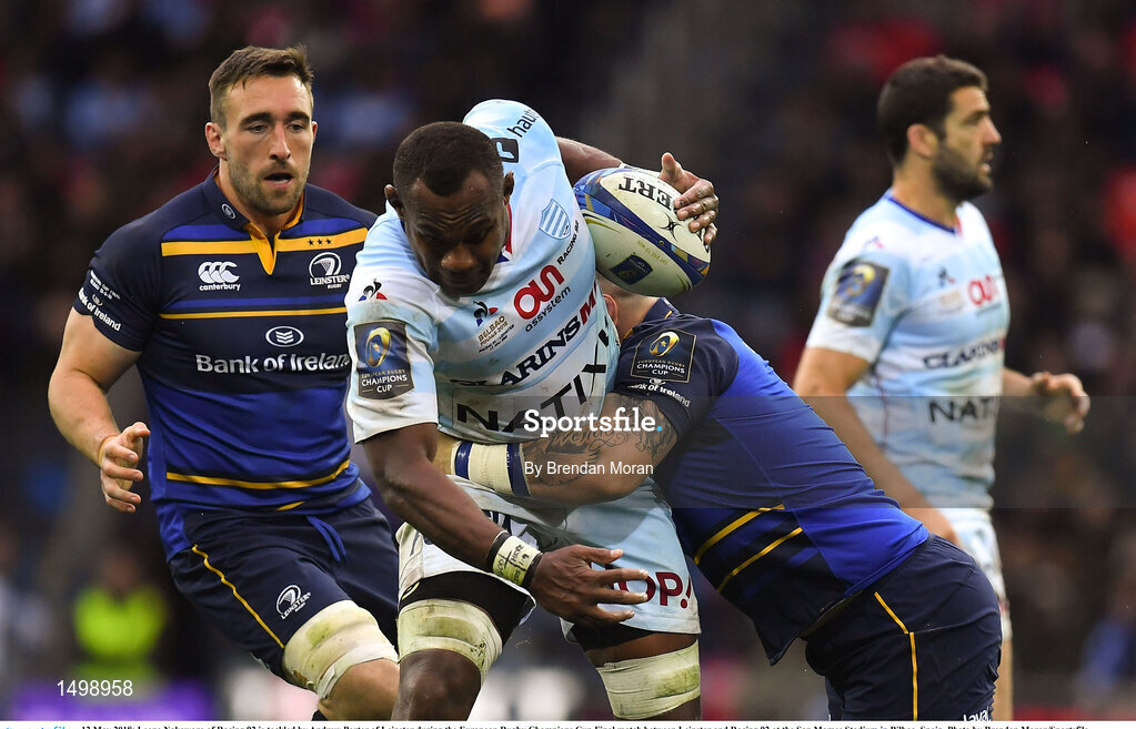 12 May 2018; Leone Nakawara of Racing 92 is tackled by Andrew Porter of Leinster during the European Rugby Champions Cup Final match between Leinster and Racing 92 at the San Mames Stadium in Bilbao, Spain. Photo by Brendan Moran/Sportsfile