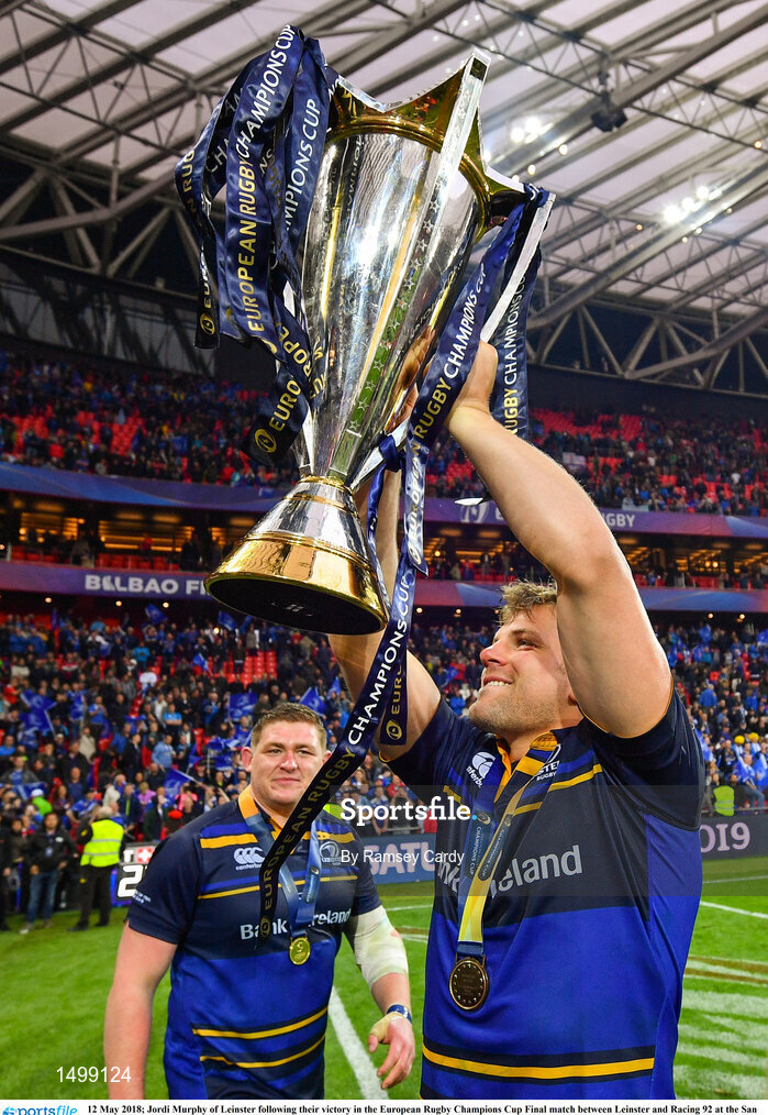 12 May 2018; Jordi Murphy of Leinster following their victory in the European Rugby Champions Cup Final match between Leinster and Racing 92 at the San Mames Stadium in Bilbao, Spain. Photo by Ramsey Cardy/Sportsfile